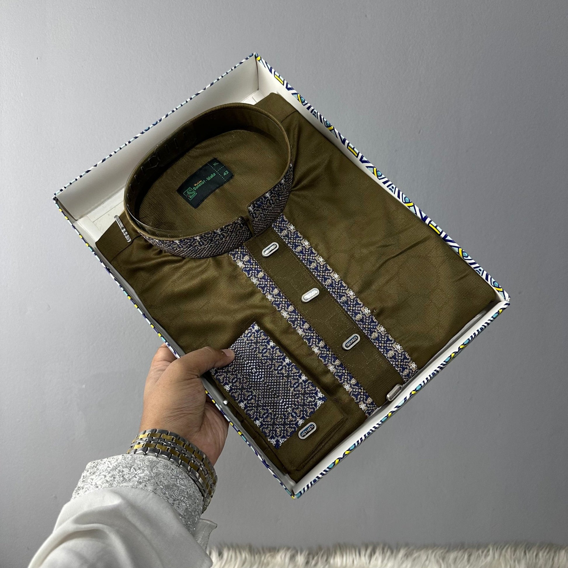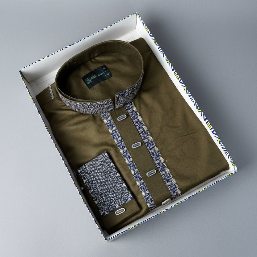 Redefine your ethnic style with the Sage Elegance Panjabi. Crafted from premium imported Bamboo Cotton, this garment offers a signature silk-like softness and high breathability, ensuring you remain comfortable and sharp throughout any occasion.